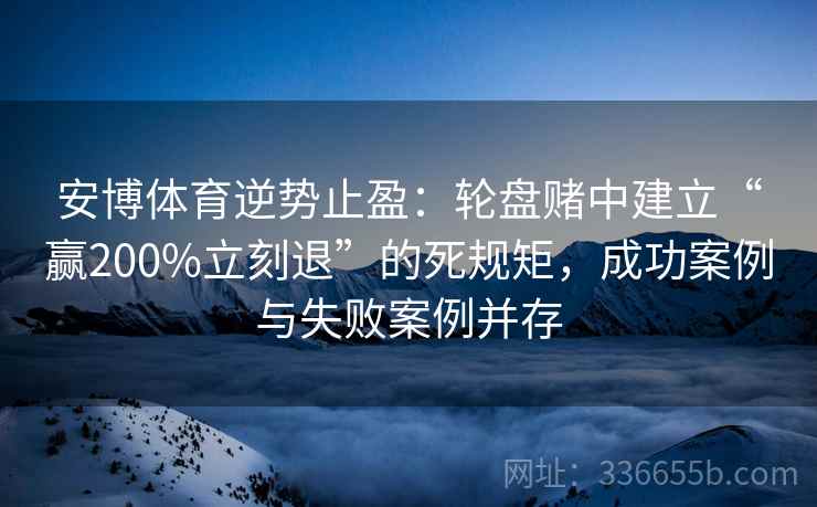 通过对成功与失败案例的对比,我们可以得出一个结论:安博体育的“赢200%立刻退”死规矩,确实是一种行之有效的止盈策略。它的真正成功与否,取决于玩家能否在心理上做到自律,严格执行预设的目标。这不仅是一项技术,更是一种心态的修炼。对于那些能够坚定执行这一策略的玩家来说,轮盘赌不再是单纯的运气游戏,而是一场智慧与耐性的大考验。